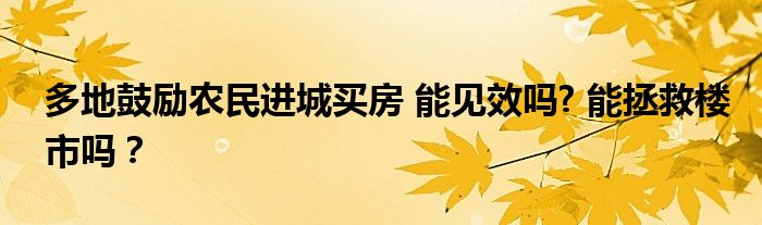【多地鼓勵農民進城買房 能見效嗎?】近期,不少地方推出鼓勵農民進城買房的政策。