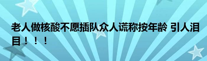 【老人做核酸不愿插隊眾人謊稱按年齡】核酸檢測目前已經成為了人們日常生活中不可缺少的一部分,在疫情嚴峻的地區一般會實行一天一檢,近期有網友爆料一老人做核酸不愿插隊眾人謊稱按年齡,讓人感動。