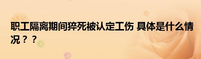 【職工隔離期間猝死被認定工傷】近日,一則消息沖上熱搜“職工隔離期間猝死被認定工傷”具體是什么情況?
