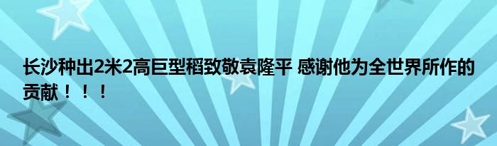 【長沙種出2米2高巨型稻致敬袁隆平】袁隆平院士,是我國研究與發展雜交水稻的開創者,也是世界上第一個成功利用水稻雜種優勢的科學家。袁老的畢生追求是“發展雜交水稻,造福世界人民”。為實現這一宏愿,他長期致力于促進雜交水稻技術創新,并將其推廣至全世界。畢其一生,專注田疇,播撒智慧,收獲富足。為“稻粱謀”,為民生計,袁老無愧俠之大者、國之仁士。