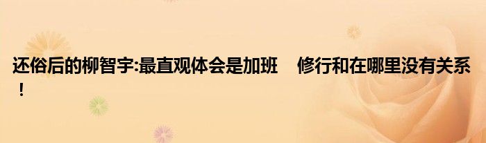 還俗后的柳智宇:最直觀體會是加班