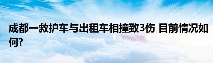 【成都一救護車與出租車相撞致3傷】今日,一篇關于成都一救護車與出租車相撞致3傷的報道上了熱搜,目前情況如何?