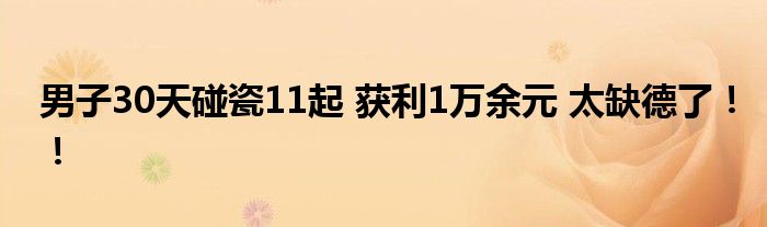 【男子30天碰瓷11起 獲利1萬余元】今日,一篇關于男子30天碰瓷11起,獲利1萬余元的報道上了熱搜,太缺德了!