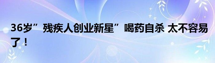 36歲"殘疾人創(chuàng)業(yè)新星"喝藥自殺