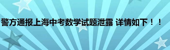 【警方通報上海中考數學試題泄露】簡直不可思議,上海中考試題泄露?警方:對3名犯罪嫌疑人依法采取刑事強制措施。