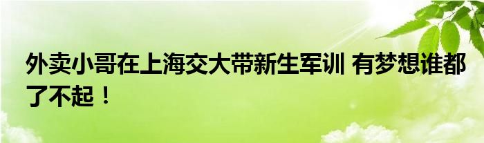 【外賣小哥在上海交大帶新生軍訓】據報道,9月2日,高帥旗在上海交通大學閔行校區為新生糾正軍訓動作。就在兩個月前,高帥旗還在送外賣呢!