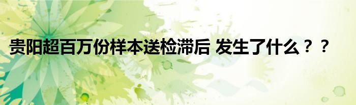 【貴陽超百萬份樣本送檢滯后】超百萬份樣本送檢滯后,發(fā)生了什么?什么情況導致超百萬份樣本送檢滯后??