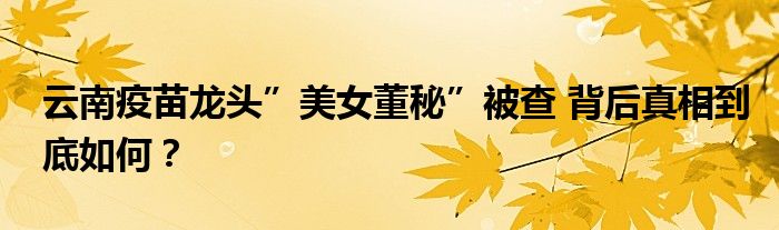 【云南疫苗龍頭"美女董秘"被查】近期,一篇“云南疫苗龍頭"美女董秘"被查”的報道登上了各大搜索引擎的熱搜榜,在網上引起了眾多網民的關注和熱議,小編也第一時間在網上查閱整理了一些相關資訊,下面一起來看下。
