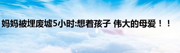 【媽媽被埋廢墟5小時:想著孩子】母愛是偉大無私的,危機時刻自己的生命都得不到保障還想著自己的孩子,感動無數人。