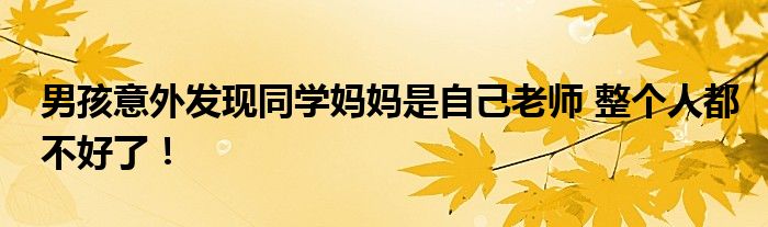 【#男孩意外發現同學媽媽是自己老師#】9月3日,江蘇。小男孩到同學家玩耍,意外發現同學媽媽是自己的老師,整個人瞬間不快樂了。
