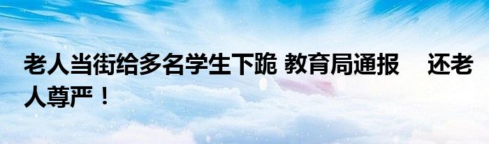 【老人當街給多名學生下跪 教育局通報】這件事情太惡略了,牽扯了校園暴力,包不好還有校外的所謂勢力,必須嚴懲!