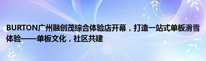 中國廣州,8月27日。單板滑雪領導品牌BURTON廣州融創茂的綜合體驗店盛大開幕。當天,特邀BURTON滑手與指導員開展單板滑雪工作坊活動,吸引眾多雪友參與。此次在廣州熱雪奇跡落成的BURTON綜合體驗店致力于為雪友提供一站式服務,從裝備租賃到單板交流,延續“We Ride Together”的品牌精神,鼓勵更多人加入到單板滑雪的社區共建中。