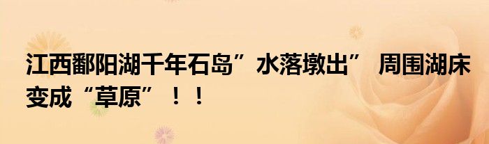 【江西鄱陽湖千年石島"水落墩出"】鄱陽湖位于江西省北部,地處九江、南昌、上饒三市,是中國第一大淡水湖,也是中國第二大湖,僅次于青海湖。鄱陽湖,是長江中下游主要支流之一,也是長江流域的一個過水性、吞吐型、季節性重要湖泊。近期有消息傳出江西鄱陽湖千年石島"水落墩出",這是怎么回事?