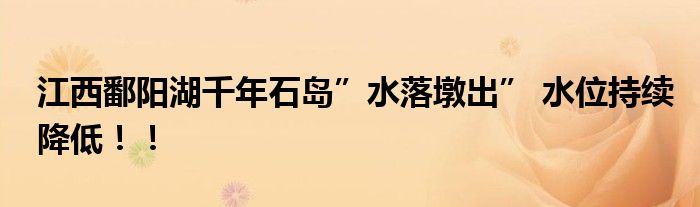 據悉,未來一周江西仍以高溫少雨天氣為主,加之長江流域來水偏少,鄱陽湖水位仍將持續走低。