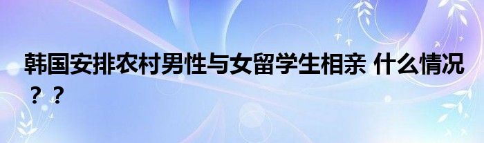 【韓國安排農村男性與女留學生相親】一則消息沖上熱搜“韓國安排農村男性與女留學生相親”具體如下。