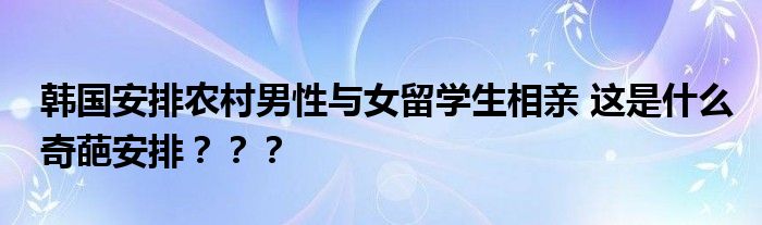 【韓國安排農村男性與女留學生相親】相親俗稱見面。相門戶、面試、對演法。物以類聚,有些人相親不看外表,會考慮門當戶對或工作能力、職業對等問題。就是驗證、考察雙方的職業或社會地位是否相似或相當、說話是否通順、順眼、般配等。近期有消息傳出韓國安排農村男性與女留學生相親,這是怎么回事?