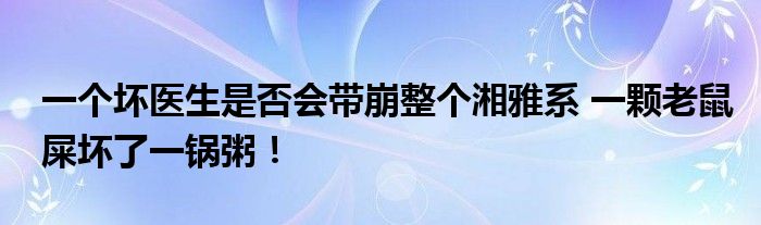 一個壞醫生是否會帶崩整個湘雅系