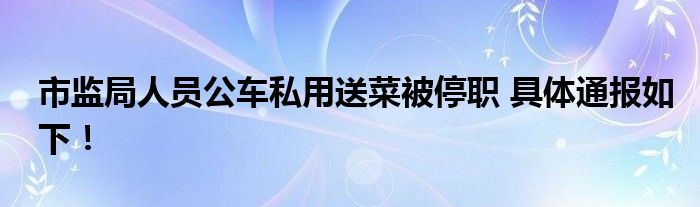 【市監(jiān)局人員公車私用送菜被停職】公車私用送菜?這是怎么回事?