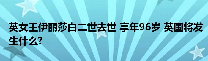 【英女王伊麗莎白二世去世 享年96歲】當地時間9月8日,英國女王伊麗莎白二世去世英國女王去世,終年96歲。女王去世后,接下來英國將發生什么?