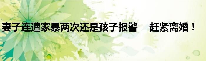 【妻子連遭家暴兩次還是孩子報警】小編認為,婚姻的底線,家暴算一條,只要有家暴行為,不管什么原因,必須離婚!