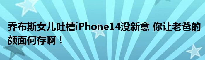 【#喬布斯女兒吐槽iPhone14沒新意# ,網友:太真實了】笑噴!iPhone14發布當晚,喬布斯23歲的女兒發布了一張“嘲諷”表情包,全網吃瓜!!iPhone14發布了,“果粉”們還來不及激動,蘋果創始人喬布斯的女兒率先發文吐槽,引來許多人共鳴:“說出了我的心聲。”