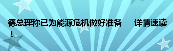 德總理稱已為能源危機(jī)做好準(zhǔn)備