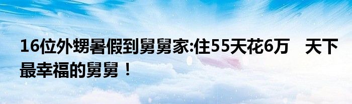【16位外甥暑假到舅舅家:住55天花6萬】這個舅舅可真是讓人羨慕,這么多孩子,該有多開心啊!