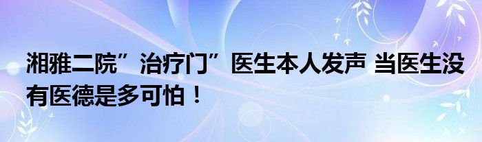 湘雅二院"治療門"醫(yī)生本人發(fā)聲