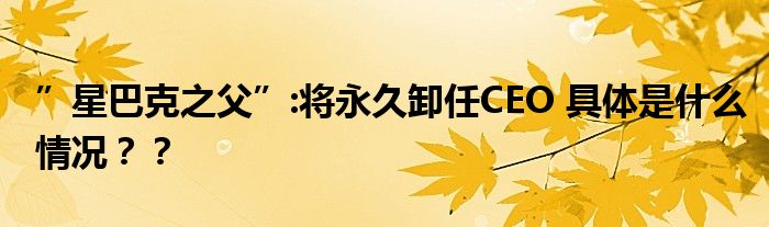 【"星巴克之父":將永久卸任CEO】近日,“星巴克之父”霍華德·舒爾茨宣布將永遠卸任CEO。