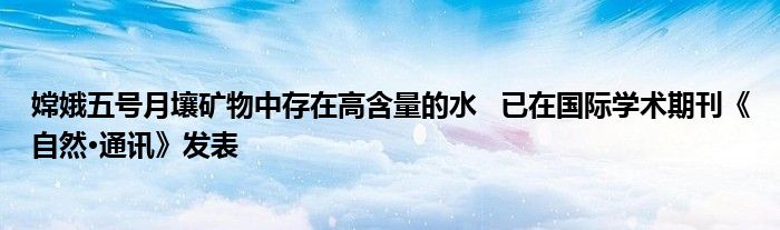 嫦娥五號月壤礦物中存在高含量的水