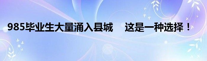 【985畢業生大量涌入縣城】感覺到這個時代慢慢的就沒有那么浮躁了,大家也開始喜歡安逸輕松的生活環境了。