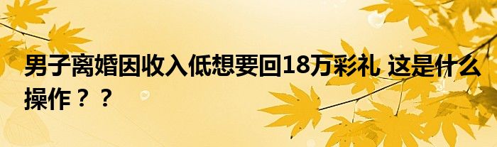 【男子離婚因收入低想要回18萬(wàn)彩禮】婚時(shí)給了女方18萬(wàn)彩禮,離婚后在法院判決下要回了8萬(wàn)。都結(jié)完婚再離婚還問人家要彩禮,這是什么操作?