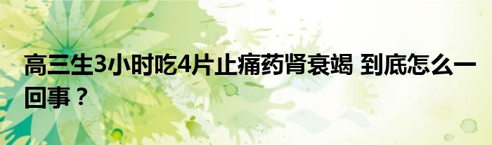 【高三生3小時吃4片止痛藥腎衰竭】高三學生患急性腎衰竭!近日,寧波一名高三學生3小時吃4片止痛藥腎衰竭引發(fā)網(wǎng)友關(guān)注。