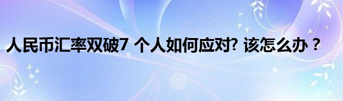【人民幣匯率雙破7 個人如何應對?】9月16日,在岸人民幣對美元匯率跌破“7”。而15日,離岸人民幣對美元匯率已先破“7”。該怎么辦?