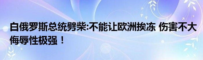 西方對俄白兩國實施制裁后,盧卡申科也沒忘用“行動”來反擊,最近他就邊劈柴邊對外表示:寒冬快到了,不能讓我們的歐洲兄弟挨凍。盧卡申科還“補刀”稱,歐洲現在可沒資格挑剔用什么材料取暖,“暖和就行”。