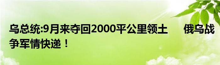 烏總統:9月來奪回2000平公里領土