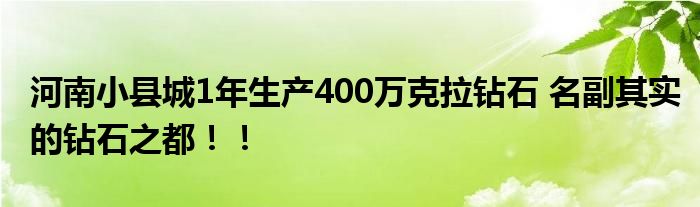 河南小縣城1年生產(chǎn)400萬克拉鉆石