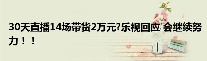 【30天直播14場帶貨2萬元?樂視回應】最近,樂視也開始搞直播了,樂視品牌相關負責人表示想要努力成為下一個新東方。不過,一個月直播了 14 場,銷售額僅有 2 萬元,這個成績很一般??!