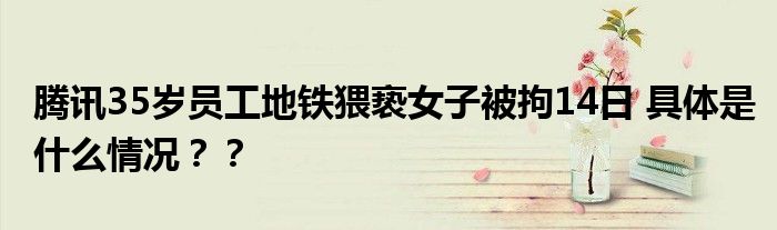 【騰訊35歲員工地鐵猥褻女子被拘14日】近期一則騰訊35歲員工地鐵猥褻女子被拘14日的消息引起了廣大人民群眾的關(guān)注,這究竟是怎么回事?