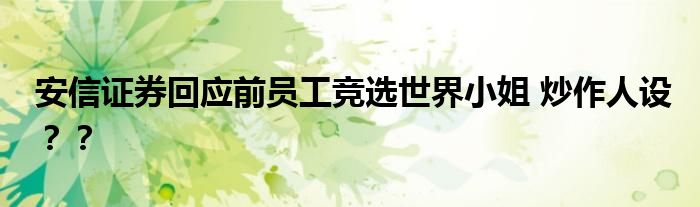 【安信證券回應前員工競選世界小姐】8月22日傍晚,“第71屆世界小姐中國區大賽”的微博官宣“秦澤文將代表中國區出戰第71屆世界小姐全球總決賽。