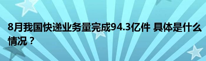【8月我國快遞業務量完成94.3億件】據悉,國家郵政局17日發布8月份快遞行業運行數據。8月份,全國快遞服務企業業務量完成94.3億件,同比增長4.9%;業務收入完成883.9億元,同比增長5.2%。
