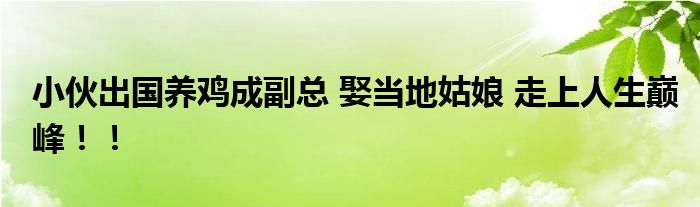 【小伙出國養雞成副總 娶當地姑娘】現在的經濟大環境不太好,很多企業和工廠都面臨著破產,很多人都面臨著即將失業的尷尬。但有這樣一位小伙,通過自己的努力,走上了人生巔峰。