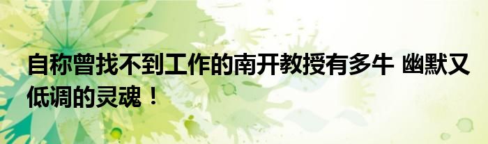自稱曾找不到工作的南開教授有多牛