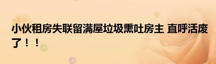 【小伙租房失聯留滿屋垃圾熏吐房主】不少網友紛紛疑惑,活成這樣生活是不能自理嗎?