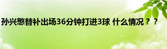 【孫興慜替補出場36分鐘打進3球】一則消息沖上熱搜“孫興慜替補出場36分鐘打進3球”具體如下。