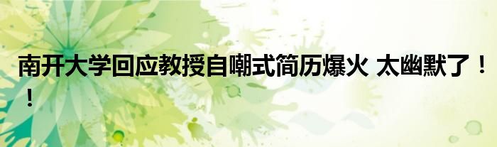 【南開大學回應教授自嘲式簡歷爆火】真實可靠,幽默風趣的教授!