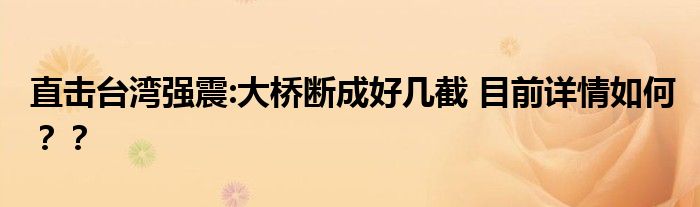 【#直擊臺灣強震:大橋斷成好幾截#】近期,臺灣多地地震牽動人心。9月18日14時44分,臺灣花蓮縣發生6.9級地震。據報道,玉里鎮有大樓倒塌,直擊臺灣6.9級強震,大橋斷成好幾截,有摩托車騎手被困橋中央,當地目前受災情況如何?