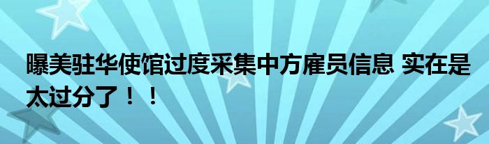 【曝美駐華使館過度采集中方雇員信息】近日,曾在美駐華使領館工作的人士表示,美方涉嫌以“背調”為由強迫中方雇員提交個人、家庭甚至鄰居的信息。