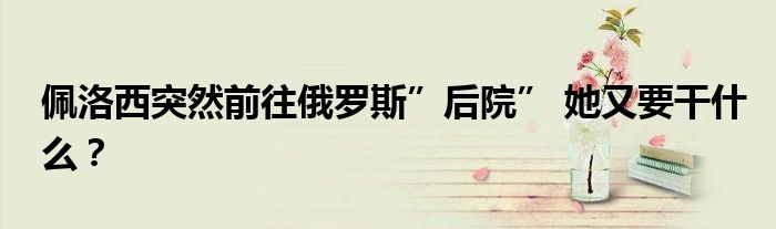 以上就是關于【佩洛西突然前往俄羅斯”后院” 她又要干什么?】的相關消息了,希望對大家有所幫助!