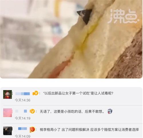阿一位女子在2月17日發視頻稱自己在遼寧鞍山某店內購買了桃李面包,結果吃到了一塊長約2至3公分的美工刀刀片。女子隨后聯系了桃李面包的工作人員,但對方表示生產過程沒有問題,并提出以后讓女子第一個試吃新品作為賠償方案。女子并不滿意這一方案,堅持要保持自己的維權權利。